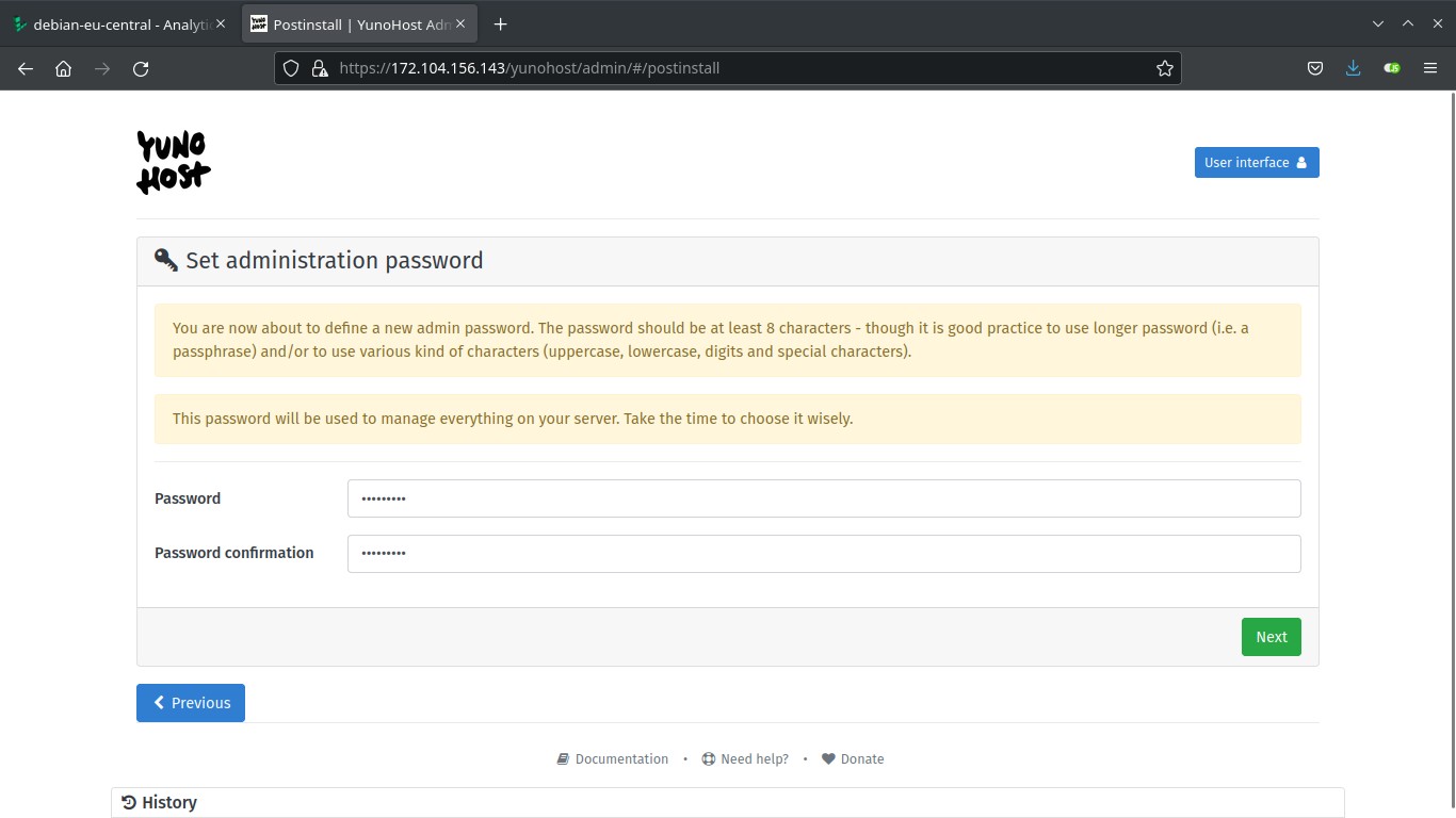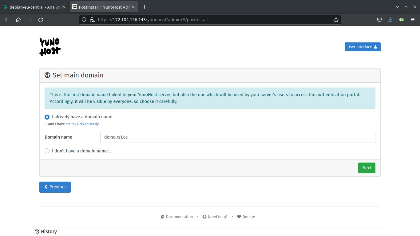 You should now proceed with Yunohost post-installation. This is where you will