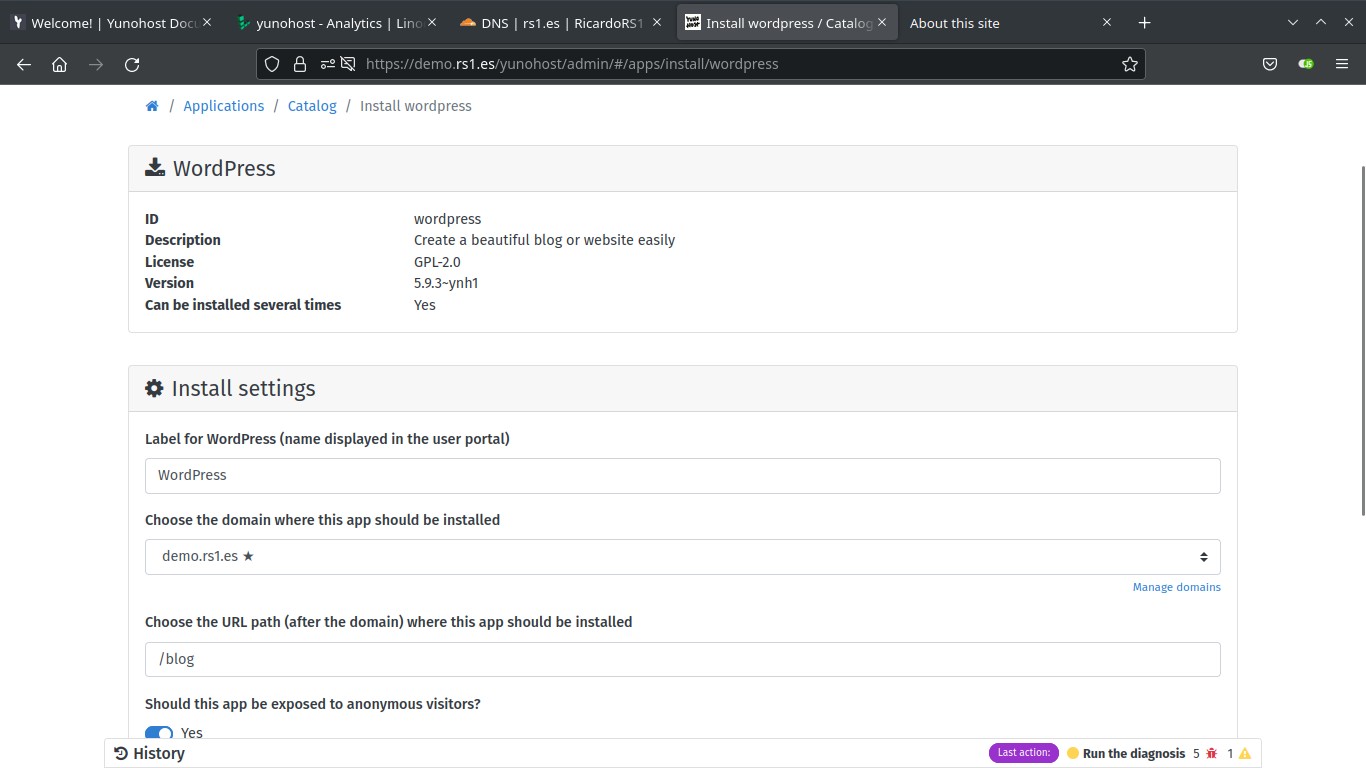 YunoHost is a server administration tool that allows you to deploy popular apps like Nextcloud or Wordpress with just a few clicks.